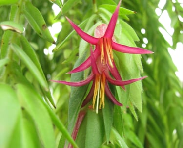 El Ceratostema rauhii es una trepadora de tallos leñosos con flores tubulares de color rojo intenso, altamente atractivas para colibríes. Puede superar los 2 m de altura si cuenta con soporte. Prefiere ambientes frescos, con temperaturas entre 14 y 22 °C, humedad alta y buena ventilación.