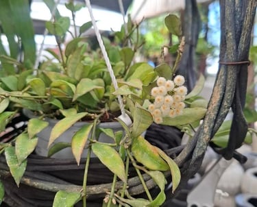 La Hoya lacunosa desarrolla tallos delgados, flexibles y trepadores, con hojas pequeñas, firmes y brillantes. Produce racimos de flores blancas en forma de estrella, con un perfume dulce muy marcado. Puede extenderse fácilmente más de 1.5 m. Prefiere humedad media-alta, temperaturas entre 18 y 28 °C y luz brillante sin sol directo.